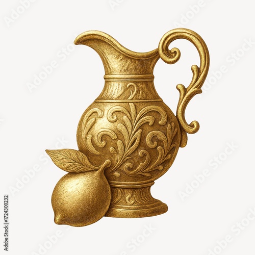 Golden ornate pitcher with lemon