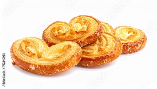 Golden Palmier Puff Pastry Cookies Against a Clean White Backdrop, pastry Cookies,