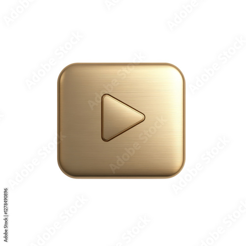 Golden play button with engraved triangle icon showcases elegant design and rounded corners