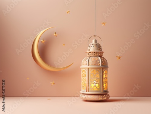 golden ramadan or muslim holiday and festival lantern. golden lantern with crescent and stars. Ramadan mubarak 3d social media post design template