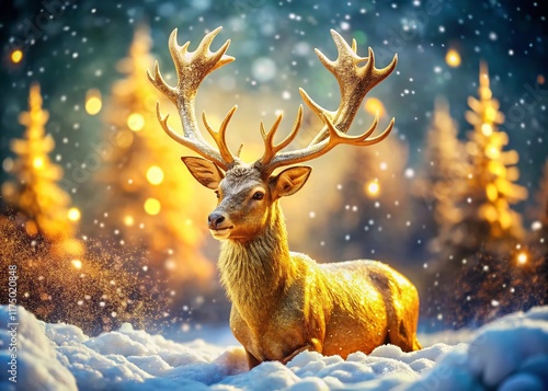 Golden Reindeer in Winter Wonderland: Candid Festive Photo