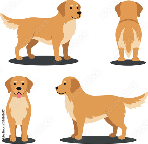 Golden retriever dog illustrations showcasing various poses in a minimal style, highlighting features and expressions, perfect for pet lovers, vector art