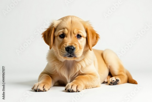 Golden retriever puppy rests on white backdrop, golden retriever, background