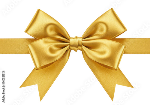 Golden ribbon bow decoration isolated on transparent background
