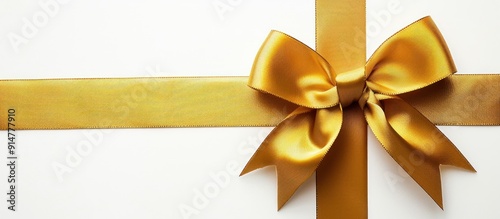 Golden Ribbon Bow on White Background