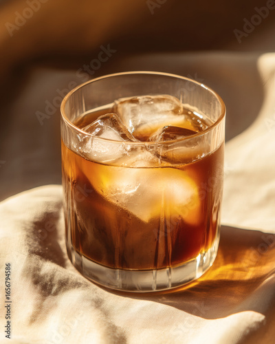 Golden rim light on cascara orange cold brew with ice