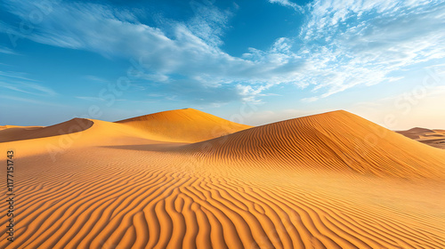 Golden Sand Dunes Under a Blue Sky - Realistic Image