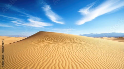 Golden Sand Dunes Under a Blue Sky with Wispy Clouds
