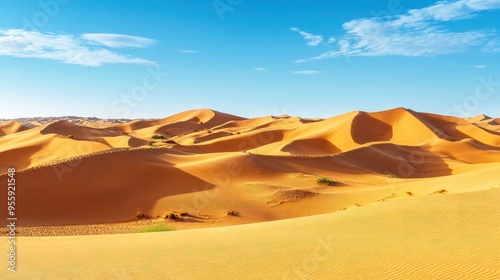 Golden Sand Dunes Under a Blue Sky with Wispy Clouds
