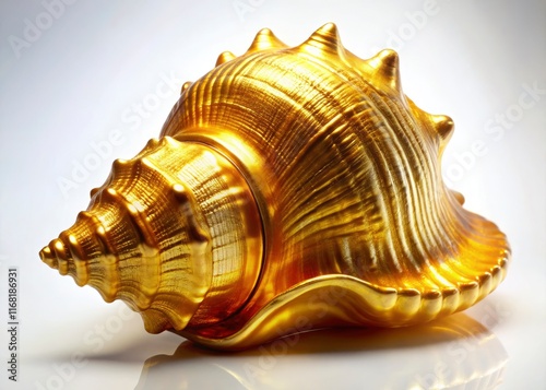 Golden seashell, lustrous and elegant, a decorative accent, beautifully isolated on white.