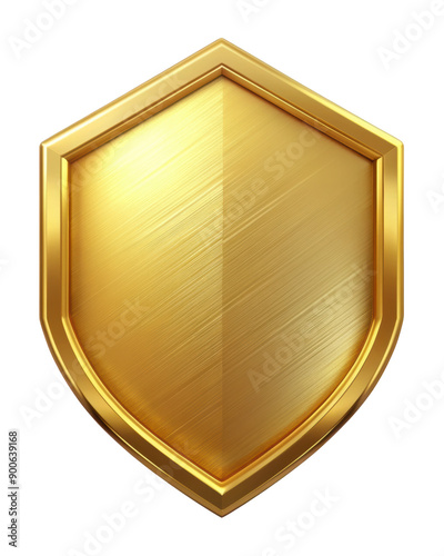 Golden Shield, featuring a sleek and polished design. Ideal for security, protection, and emblematic purposes. Isolated on transparent background, png.