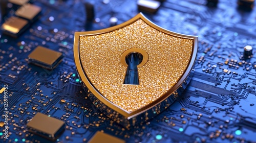 Golden Shield on Circuit Board: Digital Security Concept