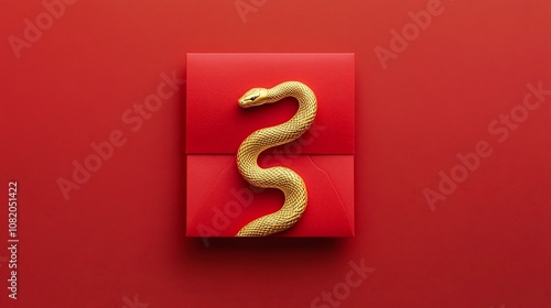Golden Snake Curled on a Red Envelope Symbolizing Prosperity and Good Fortune for Lunar New Year Celebration or Special Occasions in a Minimalist Style