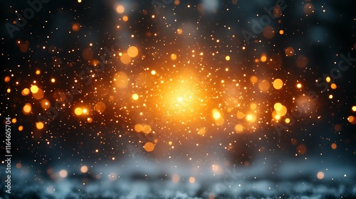 Golden Sparks and Bokeh Lights Over Dark Winter Scene