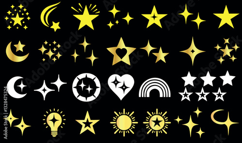 Golden star, sparkle, light burst, moon, glowing effect, shiny symbol, celestial icon, twinkle, bright glow, futuristic light, cosmic shine, elegant star shape, glowing fantasy ornament