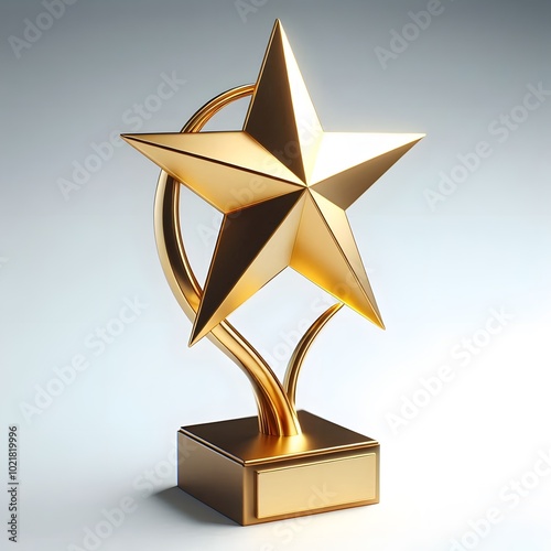 Golden star trophy, isolated on a white background, business and competition concept, winner Golden cup