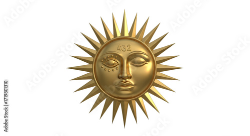 Golden Sun Face with Rays and Number 432