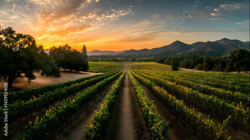 Golden sunset at the vineyard fills hearts with warmth and awe.