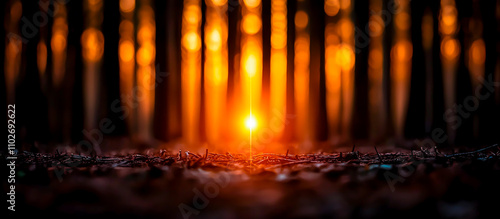 Golden Sunset Light Shining Through Trees in Serene Forest Scene