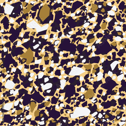 Golden terrazzo seamless pattern. Vector repeatable pattern with pebbles and stone. Background for wrapping paper, wallpaper, terrazzo flooring