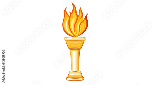 Golden torch with bright burning flame isolated on transparent background, victory symbol