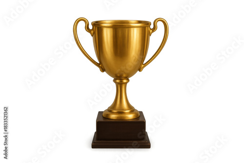Golden trophy cup on a wooden base symbolizing success, victory, achievement, and first place in competition