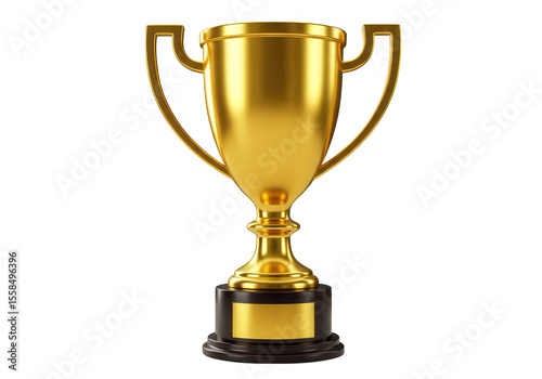 Golden trophy cup symbolizing victory and achievement isolated on transparent background