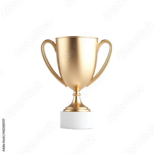 Golden trophy on white base with dual handles