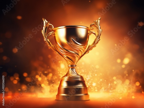 Golden trophy with flames, on a vibrant background, symbolizing victory and achievement.