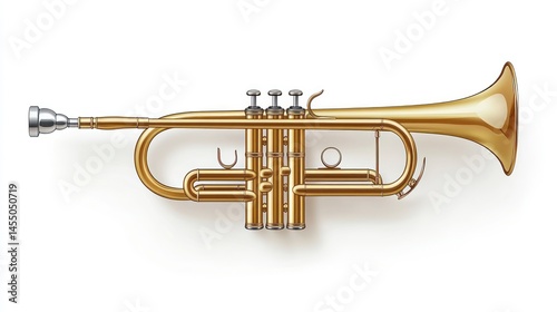 Golden Trumpet Instrument Isolated on White Background for Music Education and Artistic Purpo
