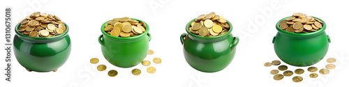 Golden wealth in a green pot isolated on a transparent background.