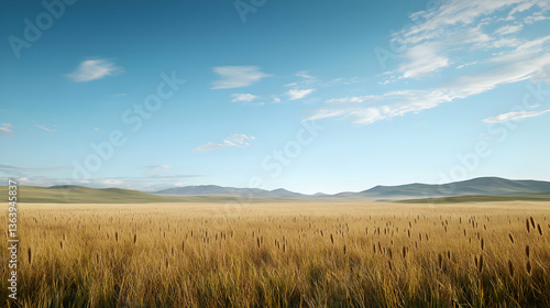 Golden Wheat Field Under Blue Sky With Wispy Clouds During Sunny Day Landscape View