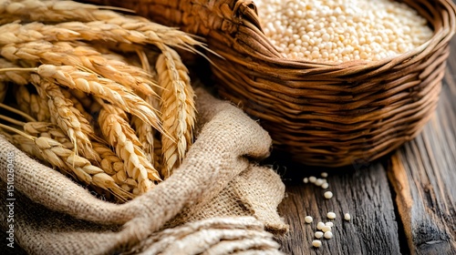 Golden Wheat Sheaves and Pearl Millet in Rustic Basket