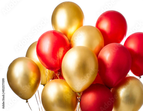 Goldene und rote Luftballons isoliert auf weißen Hintergrund, Freisteller