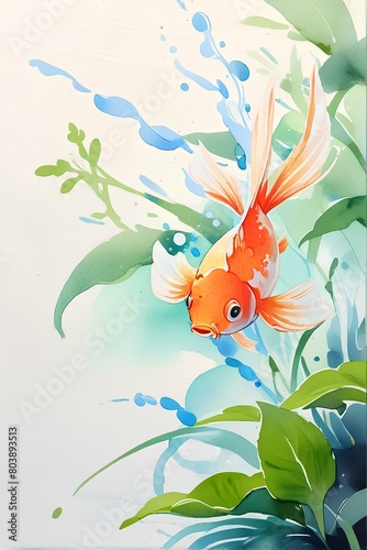 金魚のイラスト、水彩画|Goldfish illustration, watercolor.