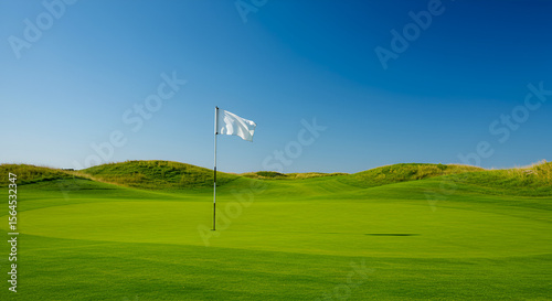Golf course putting green under a clear sky