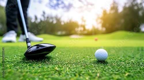 Golf Player Playing with Sunlight Background for Skill fun tournament competition Concept.