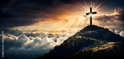 Golgotha hill and cross as symbol of Jesus' death and resurrection during Passion Week