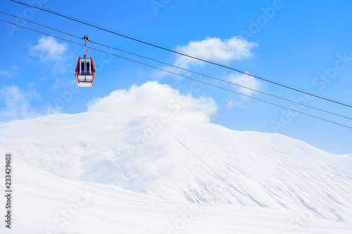 Gondola lift and snowy mountains. Ski resort Gudauri, Georgia. Caucasus Mountains.