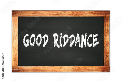 GOOD RIDDANCE text written on wooden frame school blackboard.