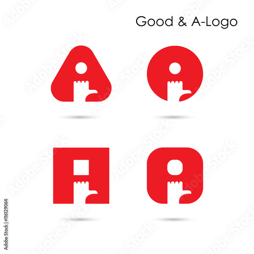 Good Logo and A- letter icon abstract logo design.Hand Logo