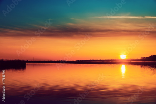good orange sunset over river