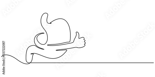 good stomach continuous one line drawing, Human stomach, Continuous single-line drawing of human internal organ. The concept of a health care happy Healthy lifestyle, happy stomach, minimalist style.