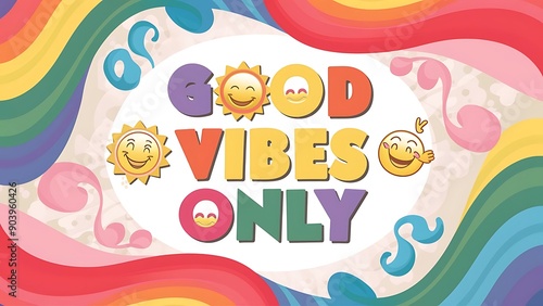 Good Vibes Only colorful background and text (T-shirt Design Motivational Quote, Illustration ,Typography)