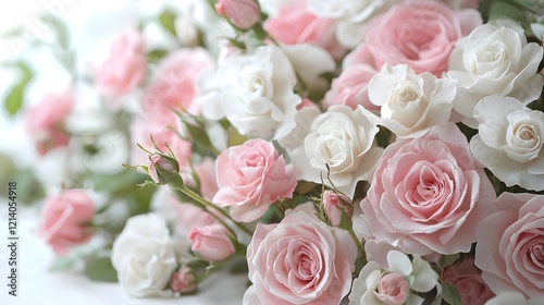Gorgeous bouquet of delicate and fragrant pink and white rose blossoms in full bloom Lush romantic and serene floral arrangement for weddings anniversaries Mother s Day Valentine s Day