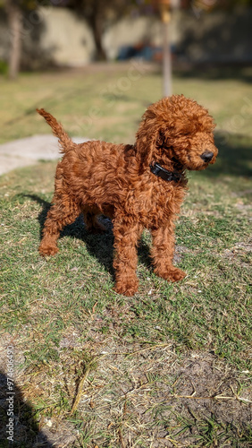 Gorgeous Red Standard Poodle Puppy Playing in the sunshine.