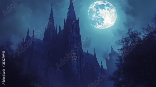 Gothic architecture under the soft moonlight. Radiant Spire. Illustration