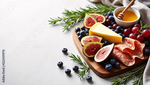 Gourmet Cheese and Fruit Platter with Honey and Fresh Herbs