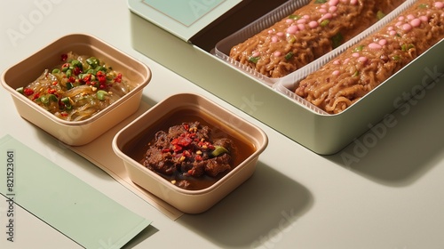 Gourmet Meal with Diverse Dishes in Packaging