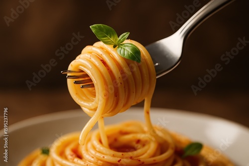 Gourmet pasta dish with perfectly twirled spaghetti on fork showcasing Italian cuisine and culinary artistry